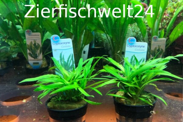 Cryptocoryne costata Die Cryptocoryne costata wächst am besten, wenn Sie in einer "Gruppe" von mehreren Pflanzen wächst, Sie sollte also nicht einzeln gepflanzt werden. Sie benötigt Licht und Düngerzugaben, CO2 wäre ebenfalls von Vorteil. Man kann diese Pflanze in den Vordergrund, aber auch mittig setzen.